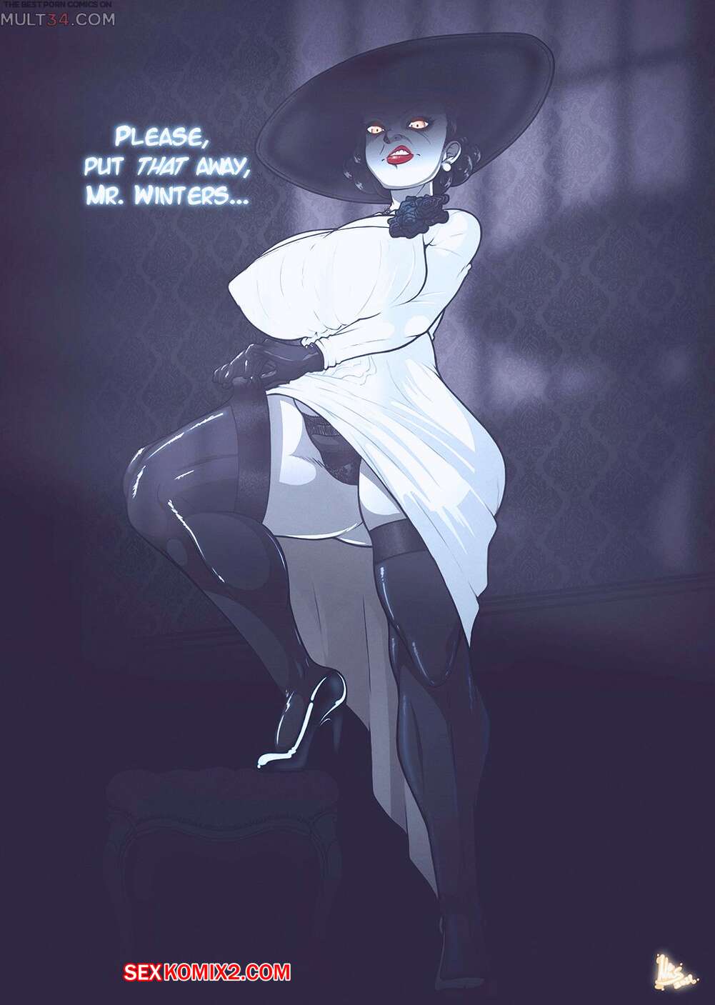 Этот порно комикс взят с сайта sexkomix2.com - Порно комикс Димитреску и ее дочери.